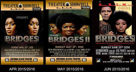 Sistahs Black Like Me Presents, "Bridges" ... A Play ... On Words, Spoken Word, Rhythm, Soul, Music & Theather. In Celebration of Our Ancestors, we are presenting A Poetry Production Bridging the gaps between yesterday and today's artist in a Choreo-poem style performance.